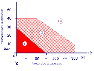 请注意以下图表所示仅作为指导,该参数引用时要根据垫片的厚度和具体操作条件。本参数参考厚度 2.0 mm,所有操作我温度和压力根据接触的化学介质而定。请查阅